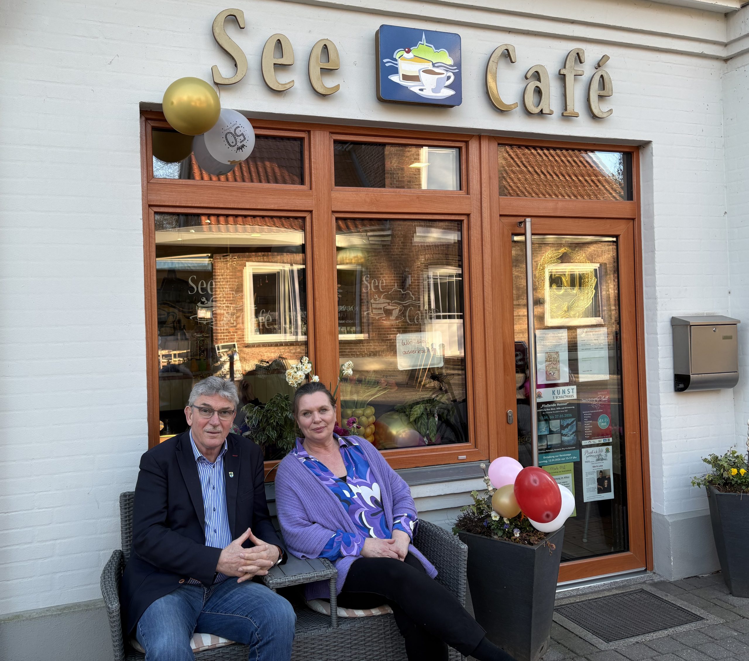 Das See-Café feierte am 20. März 2026 sein 50-jähriges Jubiläum. Der Bürgermeister Ronald Büssow gratulierte der jetzigen Inhaberin Claudia Stüben zu diesem wunderschönen Anlass, überreichte die große Anerkennungsurkunde und würdigte das langjährige Engagement für das beliebte Café.